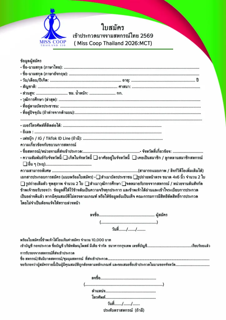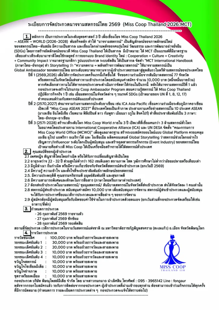 สมัครได้แล้ววันนี้ นางงามสหกรณ์ไทย MISS CO-OP THAILAND